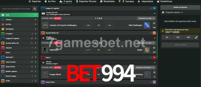 A aposta Bet994 oferece aos jogadores a experiência mais conveniente de apostas em eSports!